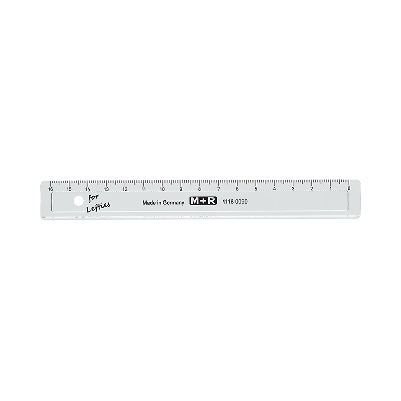 Preiswertes Schul- und Bürolineal für Linkshänder, gespiegelte Skala, von rechts nach links laufend